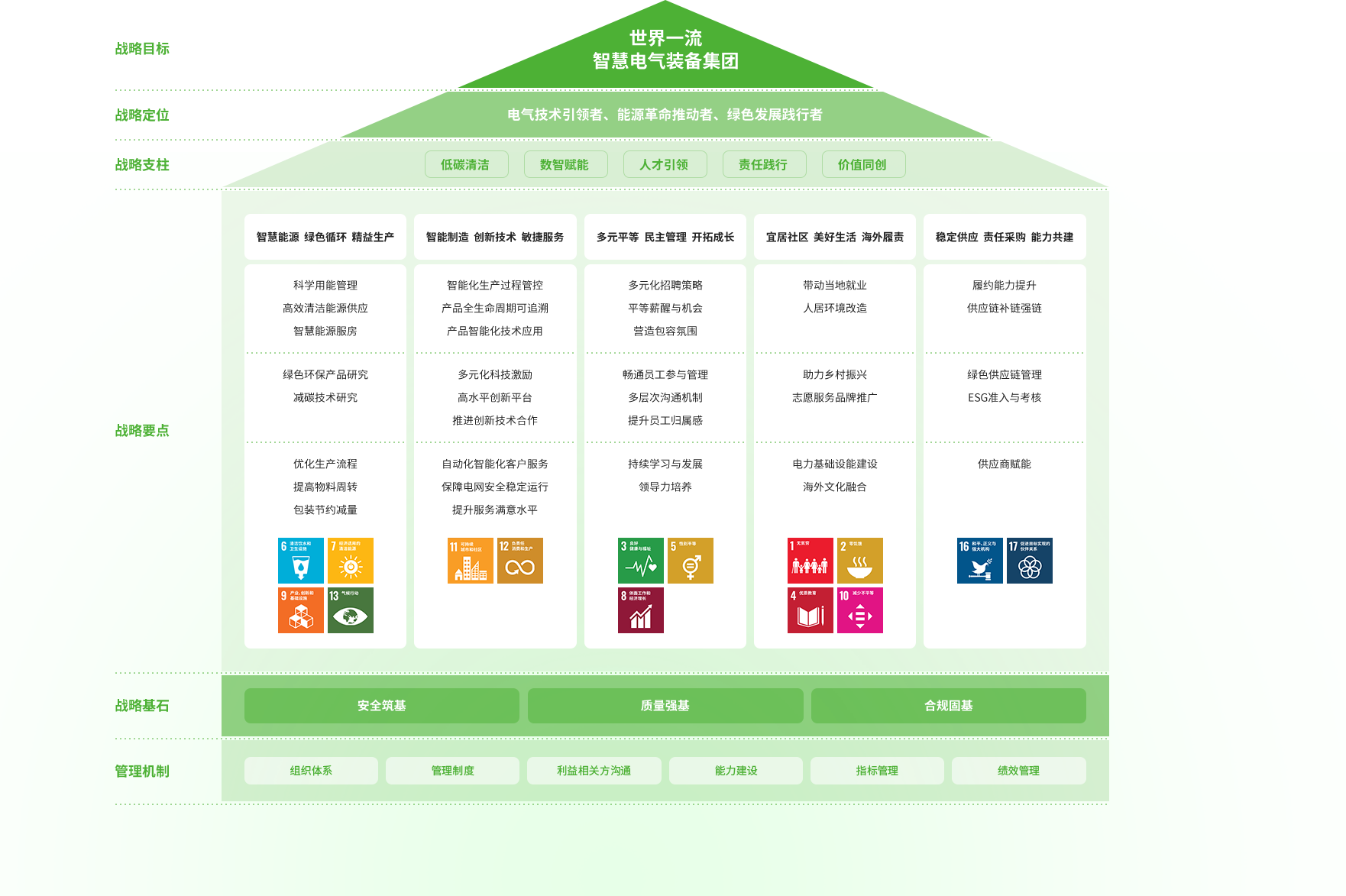 公司堅持“賦能智慧電氣、創(chuàng)引綠色能源”的企業(yè)使命,運用先進的數(shù)字技術、控制技術和信息通信技術,推動電氣裝備向智能化轉型升級,順應能源綠色清潔低碳轉型趨勢, 創(chuàng)領綠色產業(yè)生態(tài)建設,以清潔和綠色方式滿足能源電力需求和經(jīng)濟社會發(fā)展,致力于成為電氣技術的引領者、能源革命的推動者和綠色發(fā)展的踐行者。